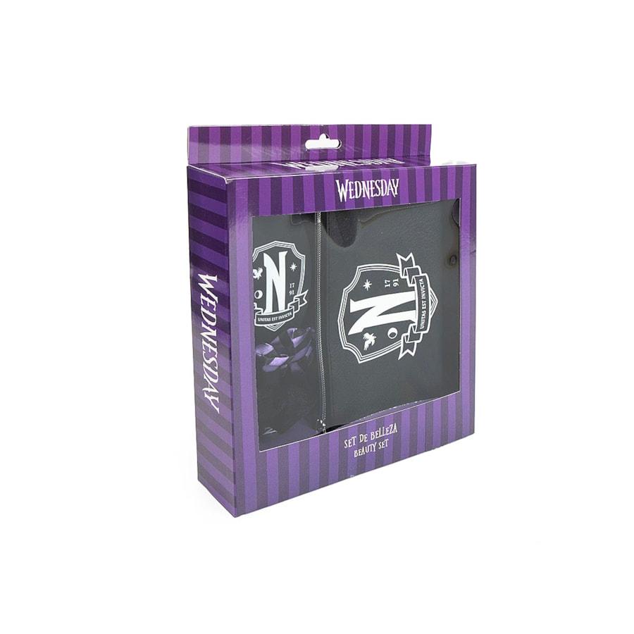 Conjunto Wednesday com nacessaire, escova e elásticos.