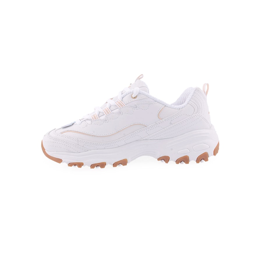 Mostre o seu estilo com uma paleta neutra usando Skechers D´Lites® Good Neutral. Este tênis de amarrar moderno apresenta um cabedal de couro sintético e liso com uma palmilha acolchoada Skechers Air-Cooled Memory Foam®.