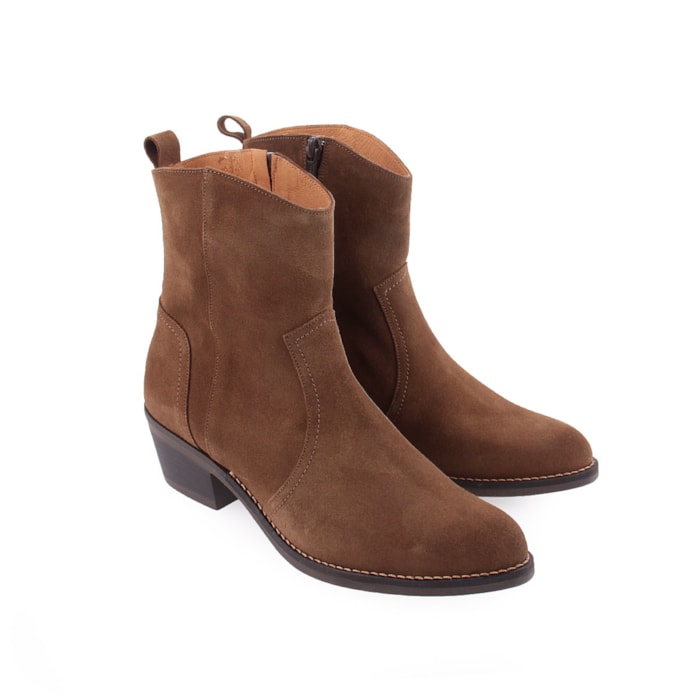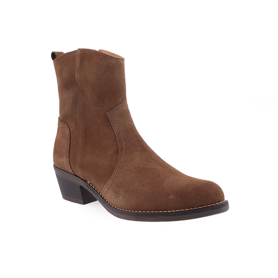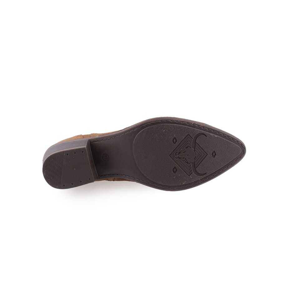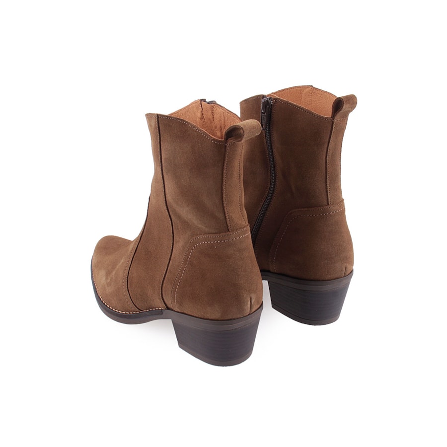 Botim estilo texana, em pele, para senhora. Salto com 6cm de altura.