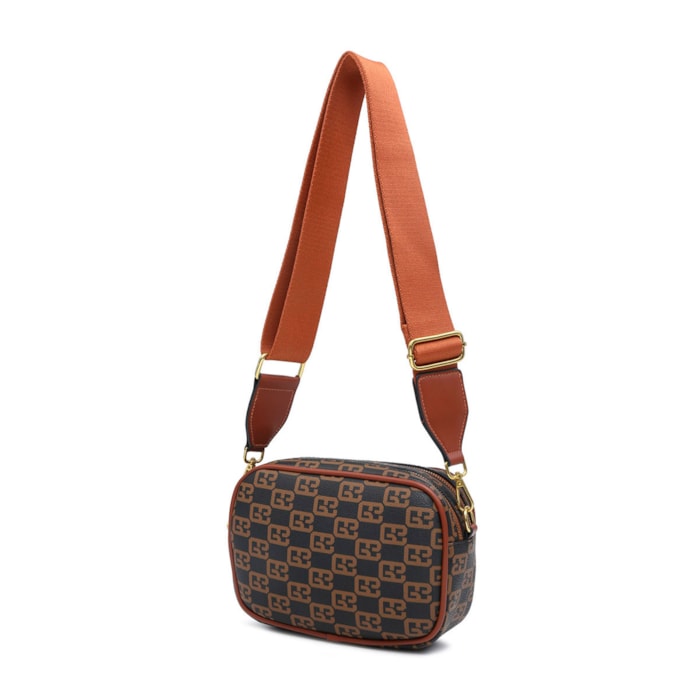 Mala senhora com alça à tiracolo e com padrão, disponivel nas cores Bege, Camel e em Preto.