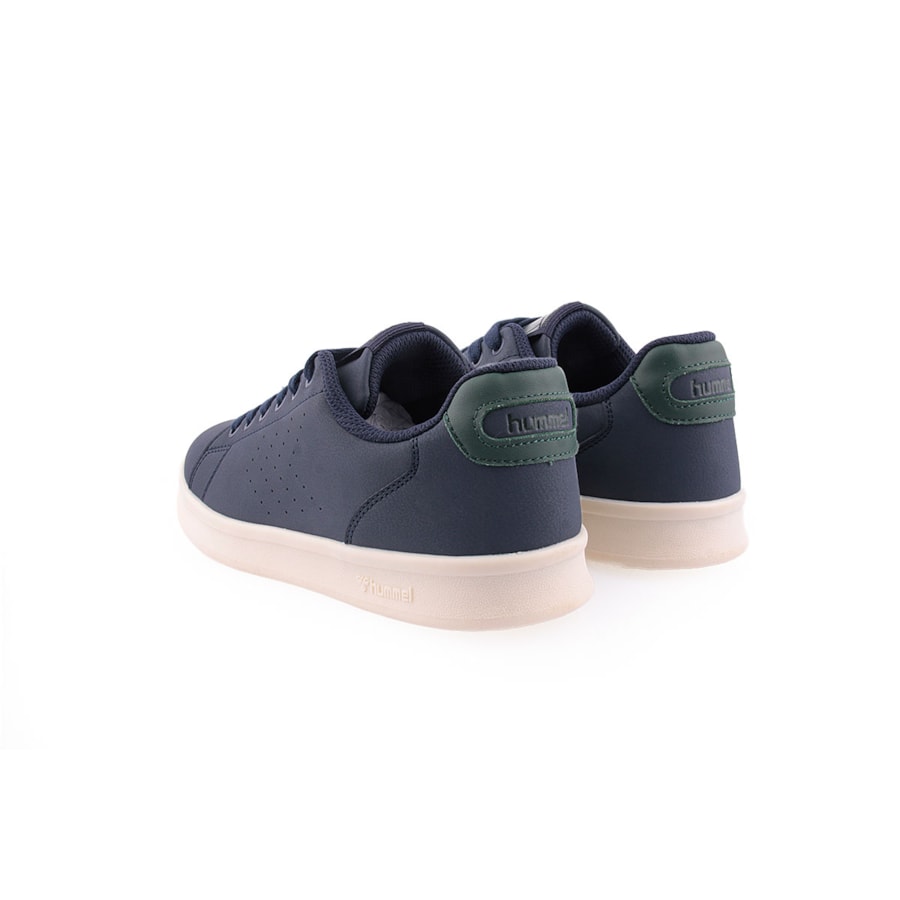 As sapatilhas com sola leve de TPR garante boa aderência, enquanto a lingua acolchoada proporciona conforto e evita atrito. O logo da Hummel no calcanhar completa o visual.